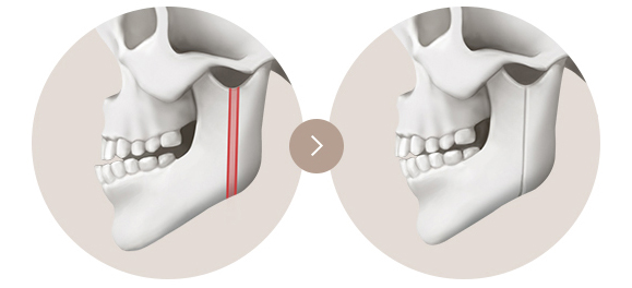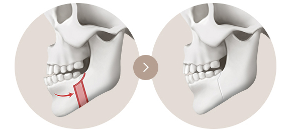 下顎骨骼的後段部位從上往下進行截斷的手術方法。 就算是神經線靠近在皮質外面的情況也可以做手術, 手術的時間較短。手術後大約2周,需要進行顎骨矯正。 鈦釘,鈦板等 人為性固定是不需要的。