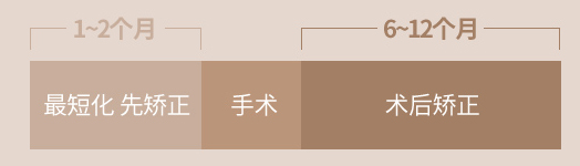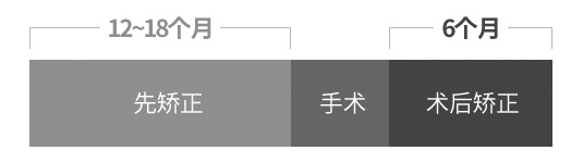 先進行術前大約為期1年以上的矯正,然後進行手術,再進行術後矯正的手術方法。因為矯正期較長,所以會給日常生活帶來一定的不便。